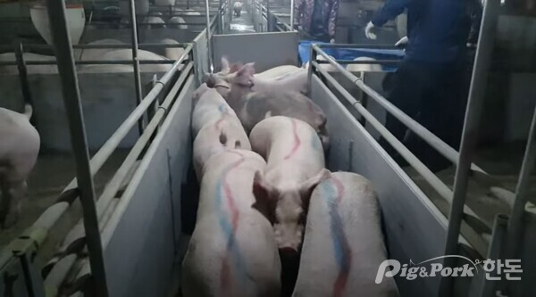 이 관계자는 농장에서 가장 손쉽게 출하성적을 개선하는 방법으로 현재 1등급 이상이 나오는 구간은 생체기준 105~129kg으로 개체별로 계근(체중 달기)해서 이 체중 구간에 출하할 경우 1등급 출현율을 80% 정도로 끌어 올릴 수 있지만 아직 대부분의 농가는 눈으로 체중을 짐작해 출하하고 있어 개선이 안 되고 있다고 안타까워했다.